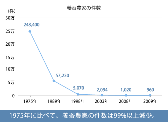 現在、国内での養蚕農家、生糸を作る製糸工場は危機的状況にあります。